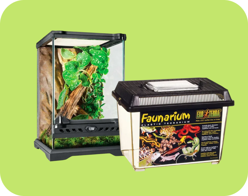 Обираючи тераріум, важливо враховувати розмір, форму та спосіб життя улюбленця. Горизонтальні моделі підходять для наземних тварин, а вертикальні — для тих, хто любить лазити. Усі необхідні аксесуари — освітлення, декор, обігрів — також зручно придбати в одному місці.